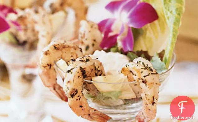 Cocktail di gamberi alla griglia con salsa cremosa al rafano