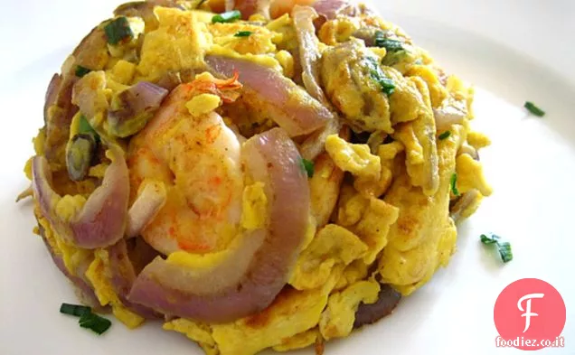 Frittata di gamberetti / Uova saltate in padella con cipolle rosse e gamberetti Ricetta