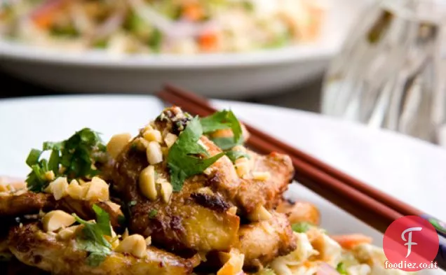 Insalata di pollo asiatica con salsa di peperoncino, zenzero e lime