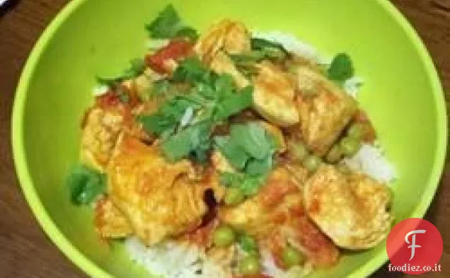 Pollo indiano orientale con pomodoro, piselli e coriandolo