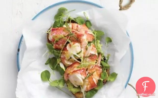"Rotoli" di aragosta a faccia aperta con diffusione di avocado
