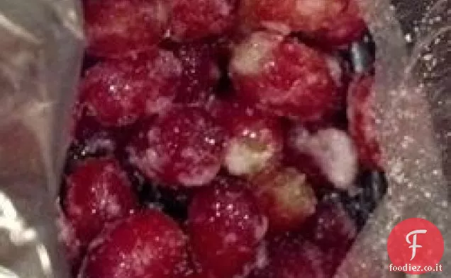 Versare lo zucchero nel sacchetto e sigillare. Agitare delicatamente la busta per ricoprire uniformemente l'uva con lo zucchero.