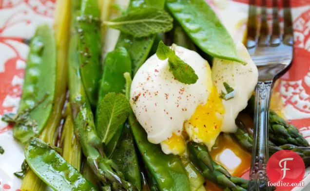 Verdure verdi primaverili e uova intere a cottura morbida Uova, Vanill