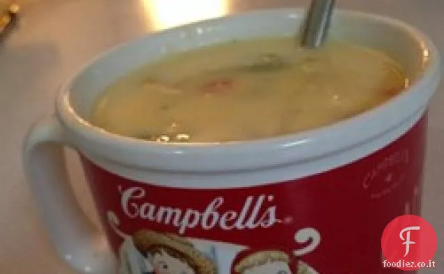 Aggiungere le lattine di zuppa e il formaggio e cuocere lentamente, fino a quando il formaggio si scioglie.