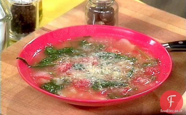 Rimuovere la pentola dalla stufa a un sottopentola. Mescolare il formaggio grattugiato nella zuppa e servire.